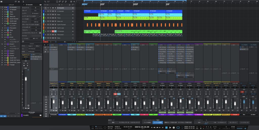 ※上の画像はStudio OneというDAWソフトの制作画面です。