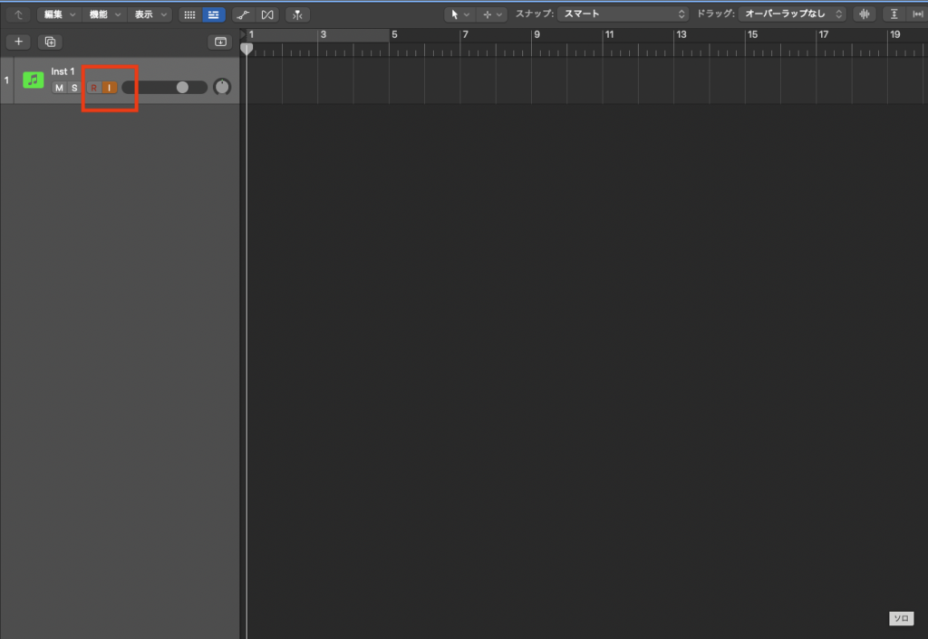 音源は読み込めているのにキーボードを弾いても音が聞こえない場合は、各トラックにある「I」というボタンに注目してください。これがオレンジ色に点灯していないと、今弾いている音はスピーカーから流れてきません。